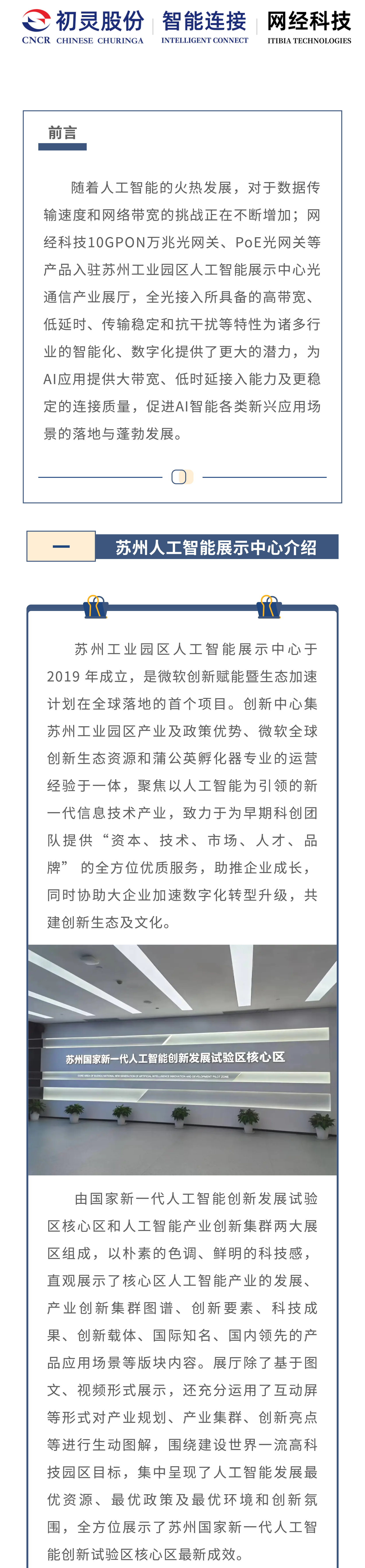 产品动态 | 初灵股份·智能连接·麻豆传媒万兆光接入网关等产品入驻苏州工业园区人工智能展示中心