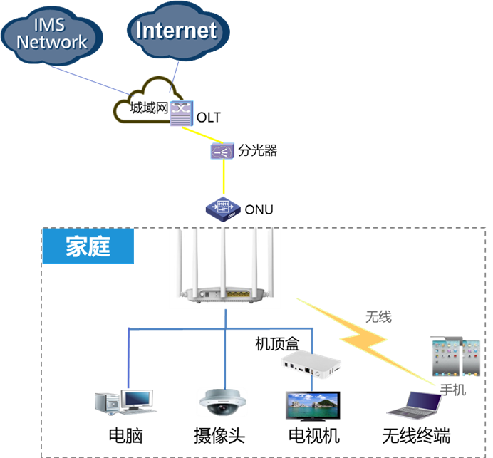 WiFi6路由器作为家庭业务的入口部署在家庭侧,适用于家庭和工作场所的路由器和设备以及智能家居IoT设备,主要使用了OFDMAMU-MIMO等技术,MU-MIMO(多用户多入多出)技术允许路由器同时与多个设备通信,能够满足家庭中各种场景组网需求,实现家庭网络覆盖。