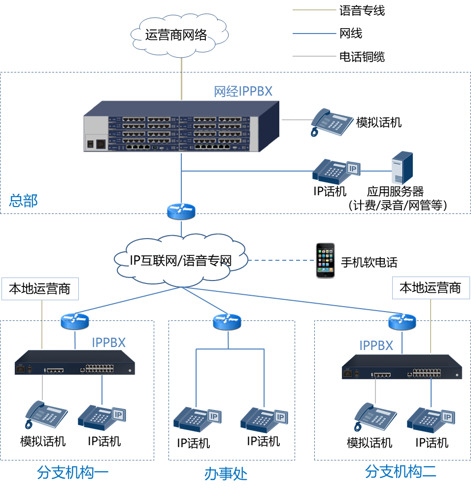 解决方案 / 企业VOIP组网 / 企业多分支语音组网
